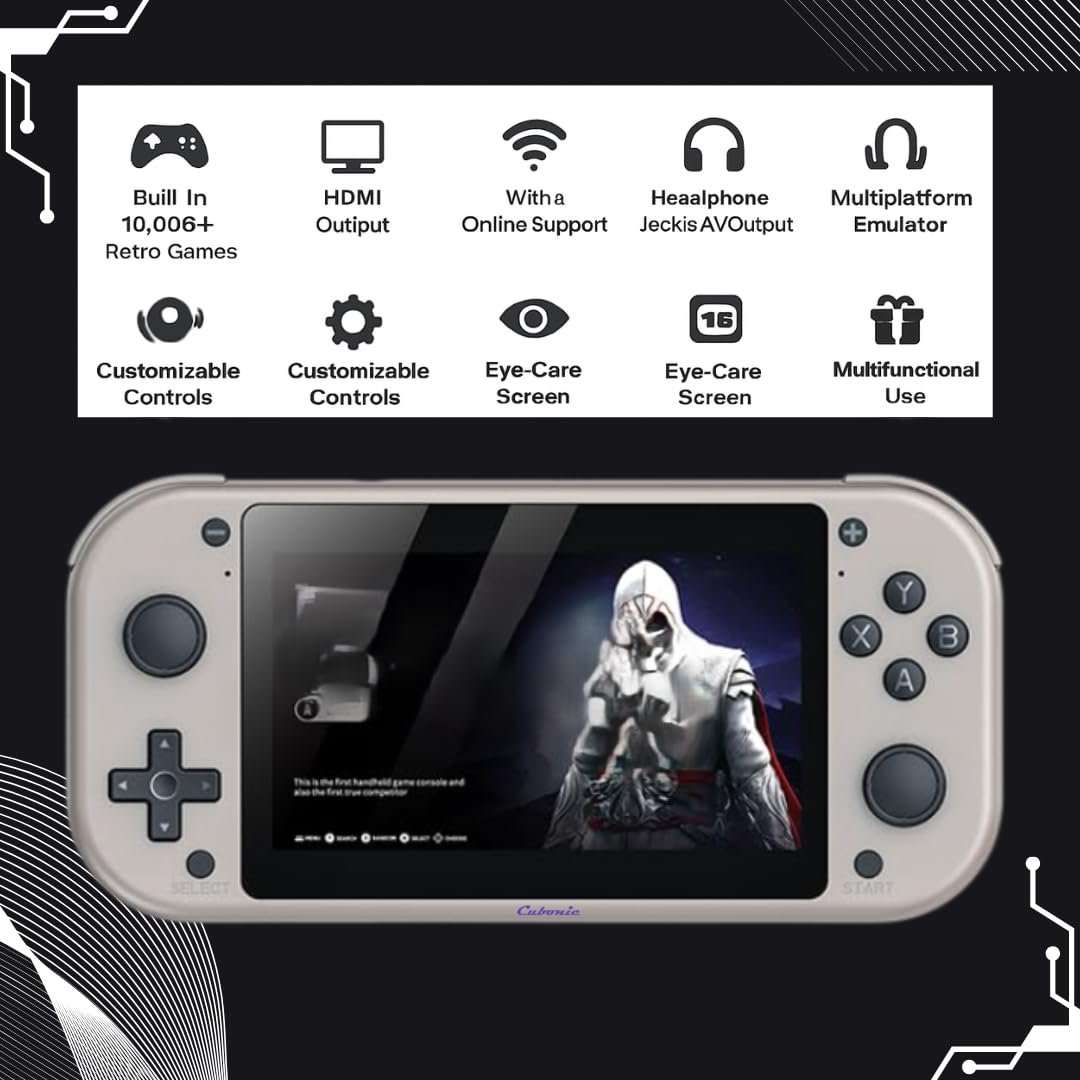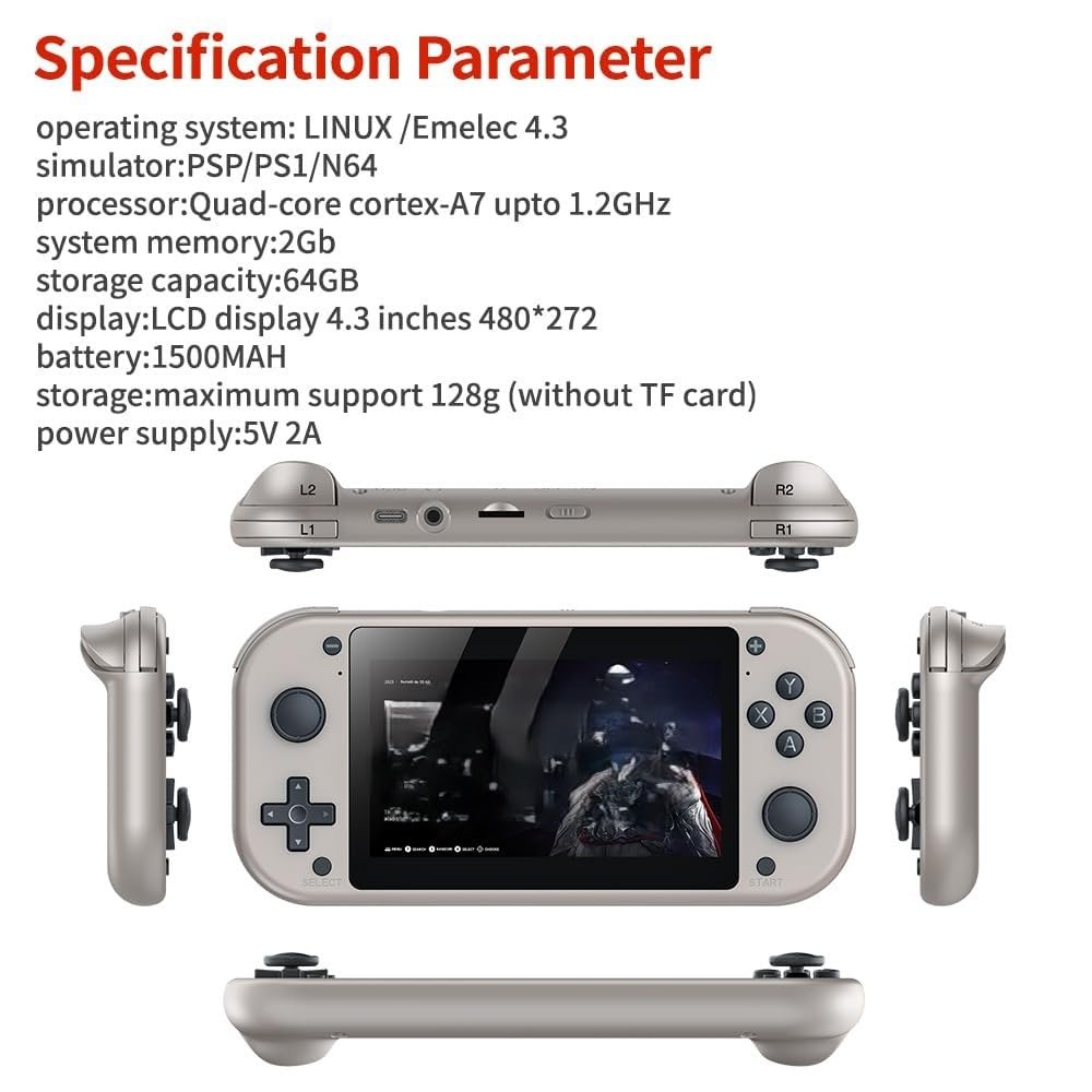 Details: Experience gaming nostalgia with the Cubonic VividGo MI7, a versatile handheld gaming console powered by a quad-core Cortex-A7 processor running at up to 1.2GHz. The device features a crisp 4.3-inch LCD display (480×272 resolution) that brings your favourite games to life. With 2GB system memory and 64GB storage capacity, this console supports over 20,000 retro games across multiple platforms including PSP, PS1, and N64. Its high-capacity built-in battery delivers long-lasting playtime, while the USB charging support ensures quick and convenient recharging.