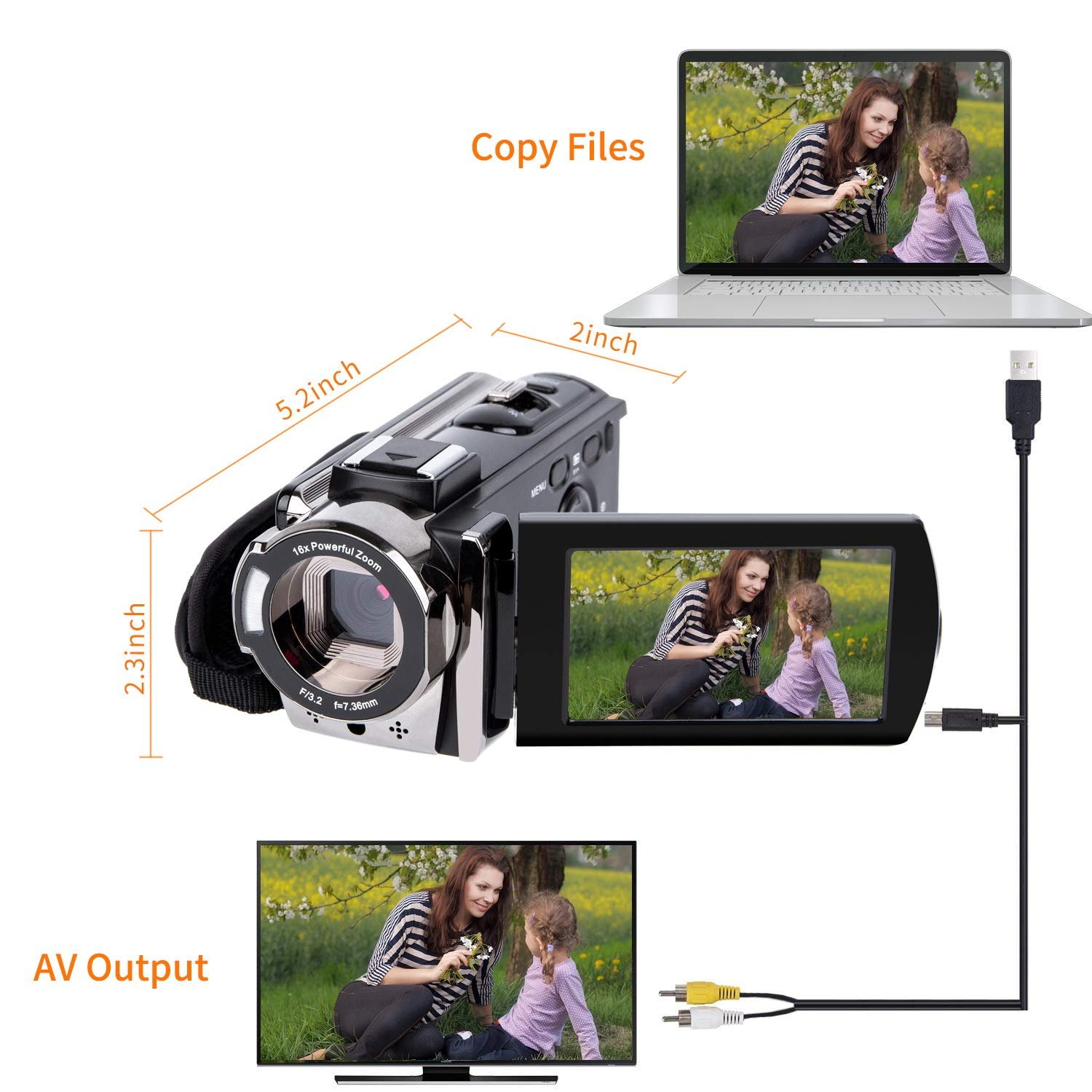 kicteck Video Camera Camcorder Digital YouTube Vlogging Camera Recorder kicteck Full HD 1080P 15FPS 24MP 3.0 Inch 270 Degree Rotation LCD 16X Digital Zoom Camcorder with 2 Batteries(604s) Black