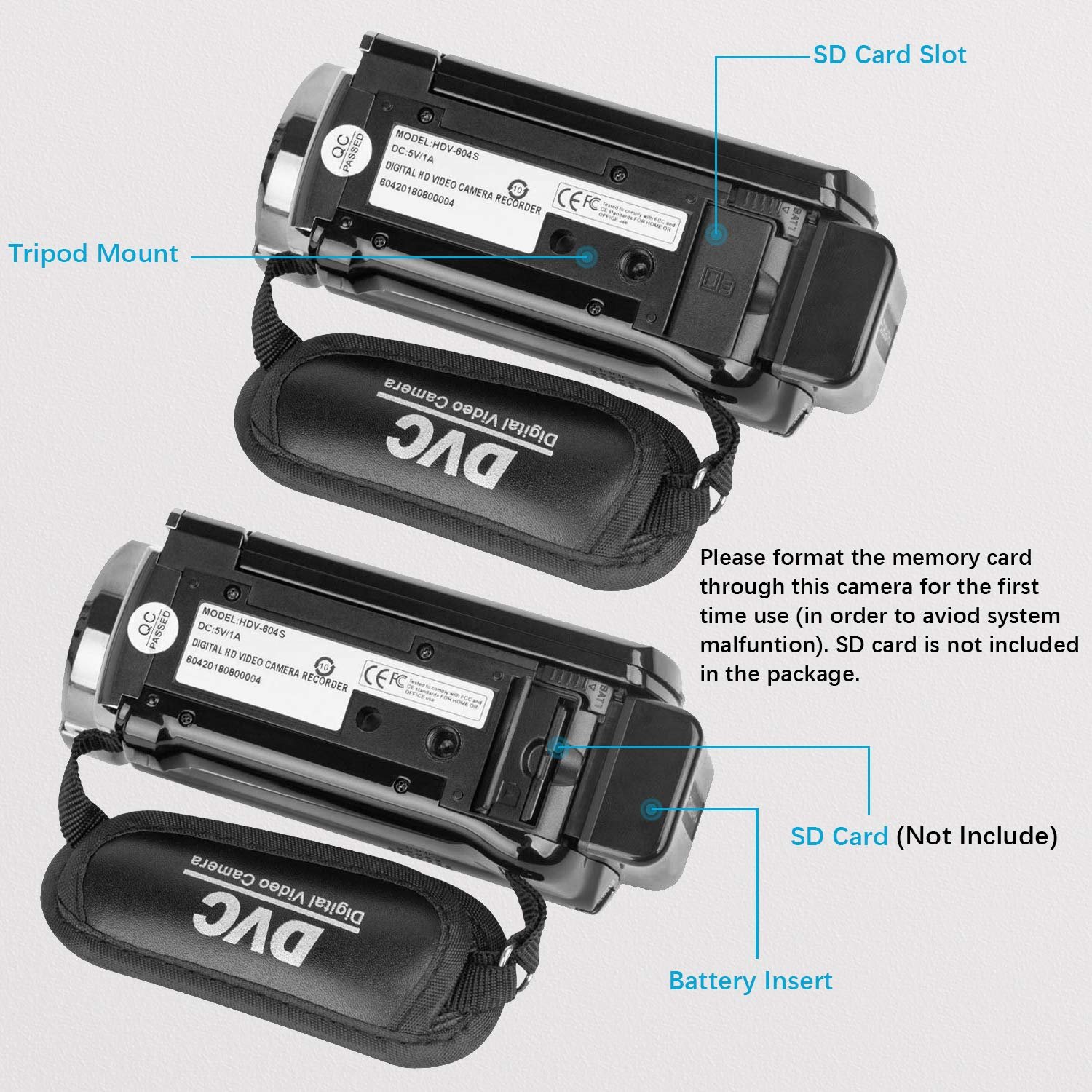 - 【Small and Compact Camcorder】: The camcorder supports SD/SDHC card up to 128GB (not included), just remember to format the SD card before use the camcorder first time. The camcorder support the tripod(not included) connection and the hole is standard size.