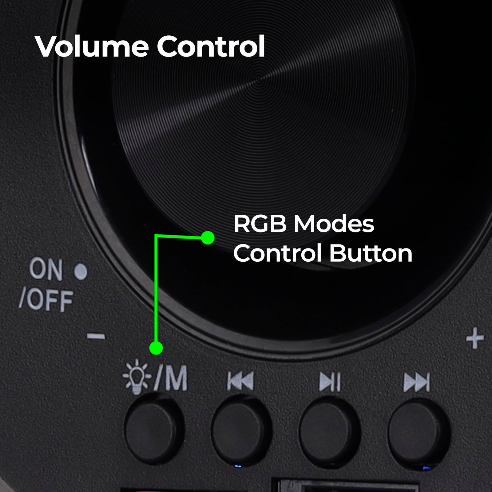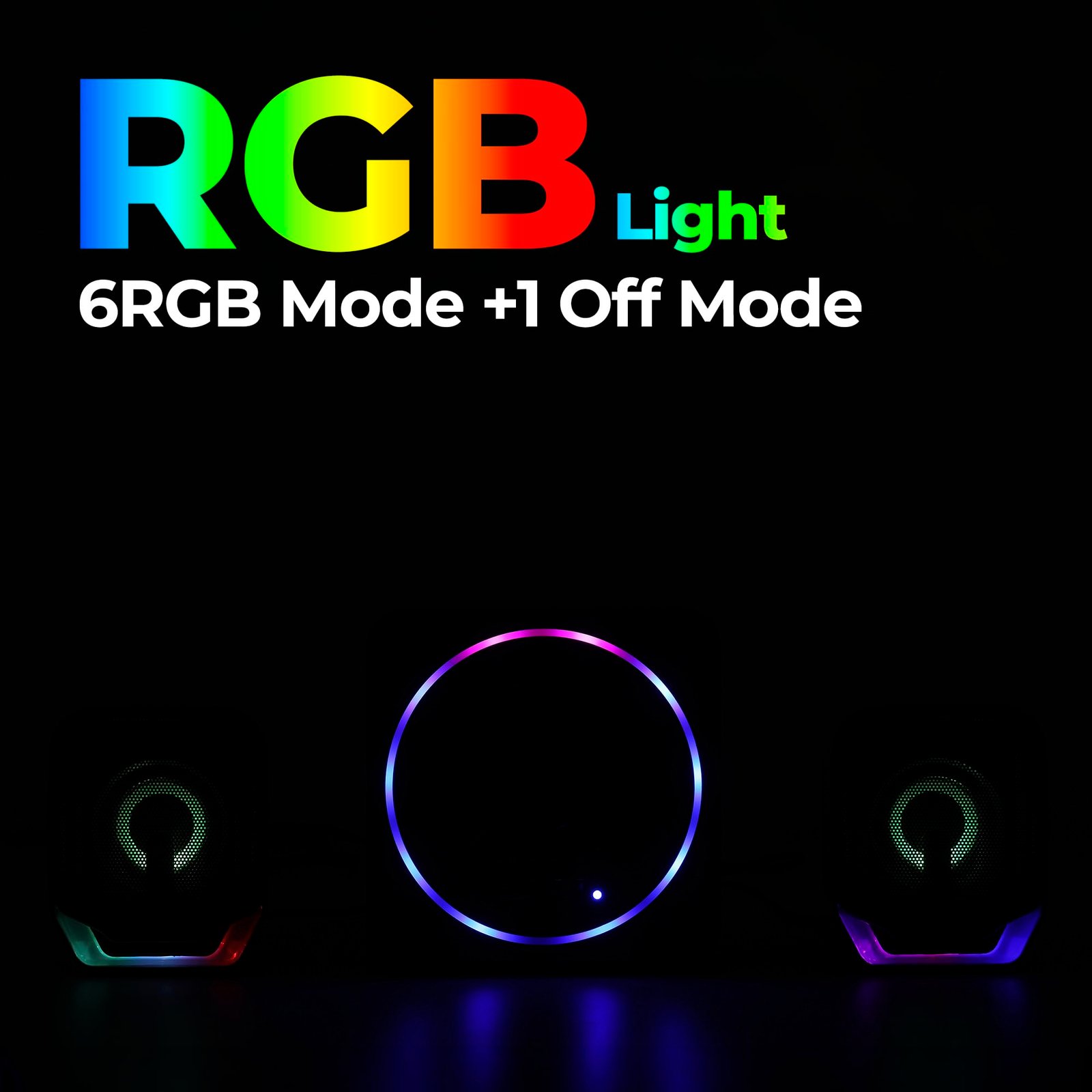 - This 2.1 speaker is enough to make the space colorful with its vivid RGB LED lights that can be operated in 6 modes with 1 OFF mode. These modes can be controlled and set with the help of a control switch